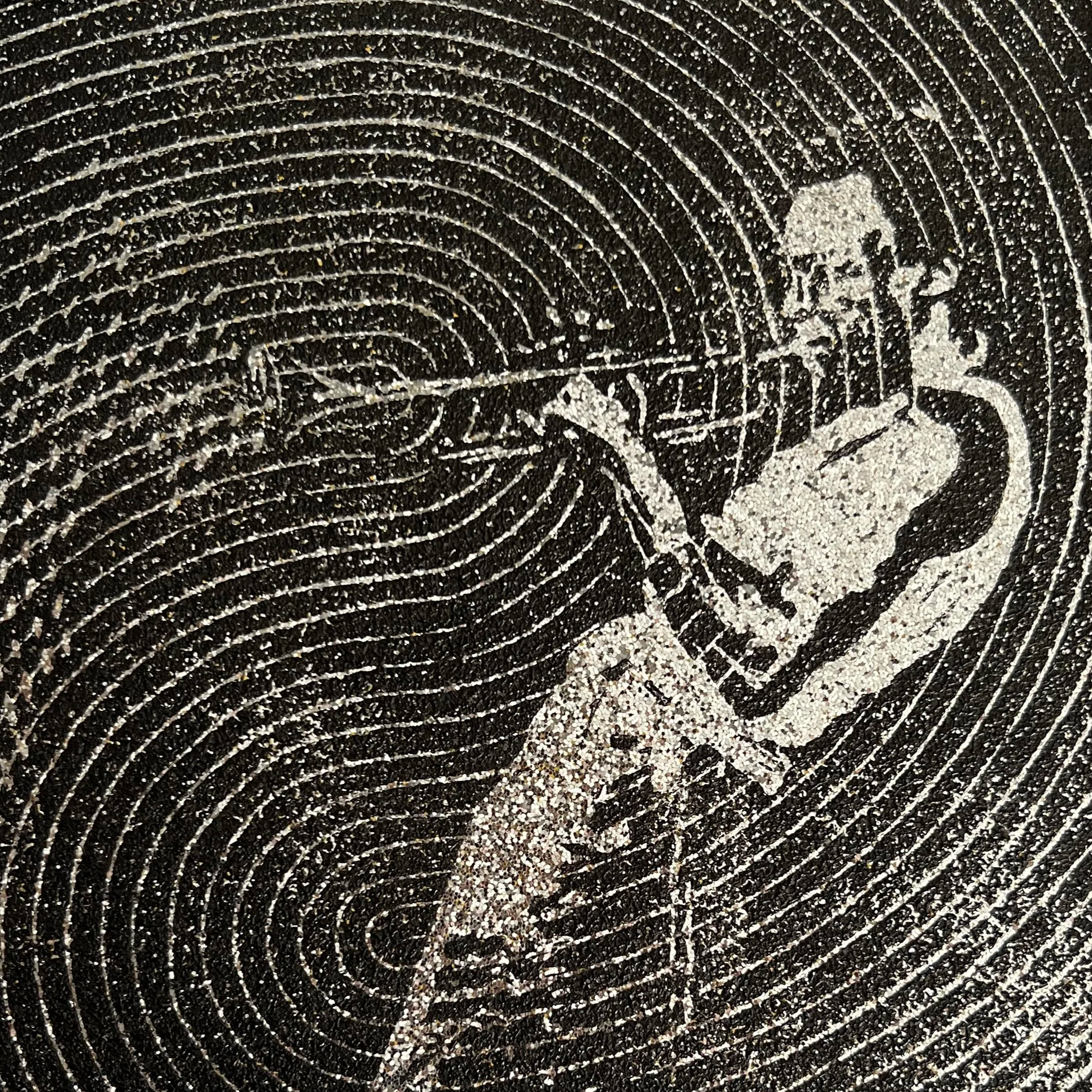 Miles Davis : Original drawing, carved into linoleum and hand printed on sparkle paper.