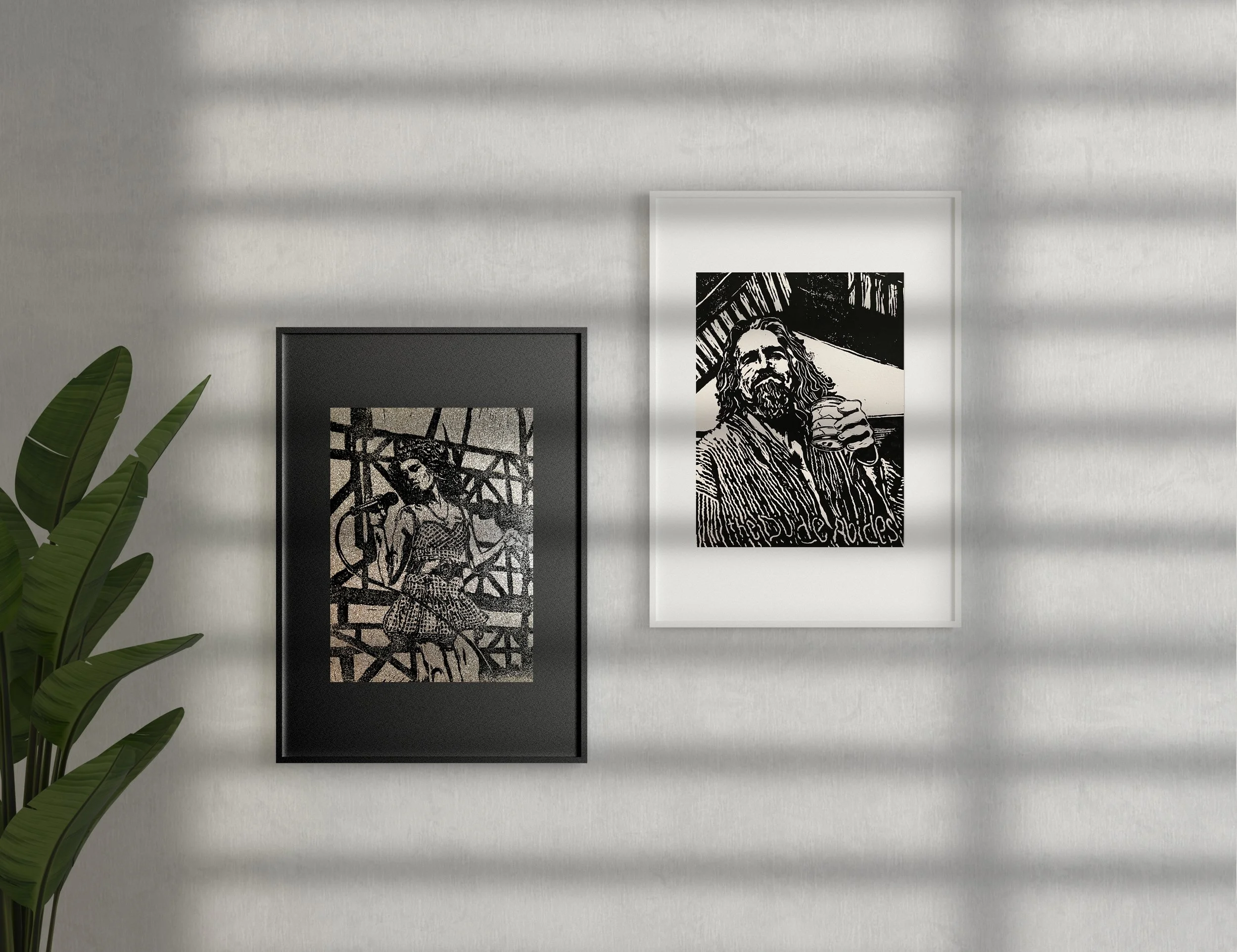 With a roller, apply ink to the block. All the areas not carved away will absorb the ink. Place paper onto the inked block and press to transfer the ink. Peel off paper.